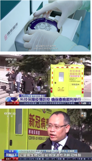 在2021、2022年央視春晚疫情防控工作中,以及2022年冬奧會開幕倒計時100天主題活動等重大活動中,“輕騎兵”均發(fā)揮了重要作用。這抹備受矚目的“晶典黃”是國內(nèi)首臺集采集和檢測為一體的移動式新冠病毒檢測實驗室,裝載基于全新一代先進的芯片實驗室(Lab-on-a-chip)設計理念,檢測時僅需將樣本保存液加入芯片,封閉芯片后即可上機,手工操作小于1分鐘。生物反應全程(包括核酸提取、核酸純化、擴增反應、核酸檢測和結果判讀等)均集成在一個整體密閉、內(nèi)部分區(qū)的微流控芯片內(nèi),由全自動核酸分析儀完成,因此無需專業(yè)分區(qū)實驗室,無需人工干預,最大程度降低操作人員感染及樣本間交叉污染的風險。