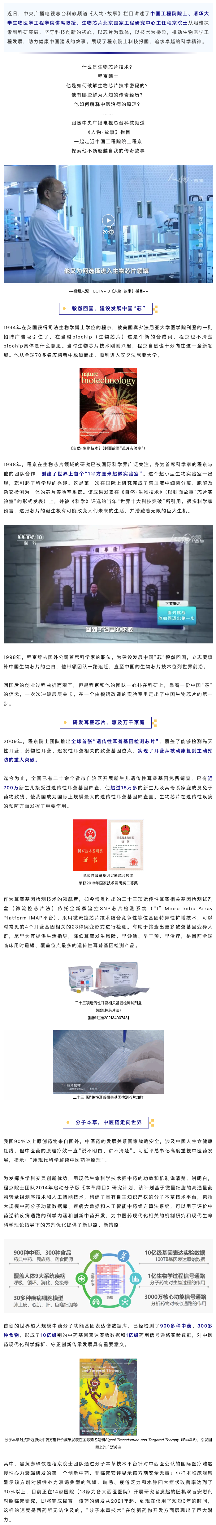 CCTV-10《人物•故事》| 程京院士:用“芯”守護人民健康